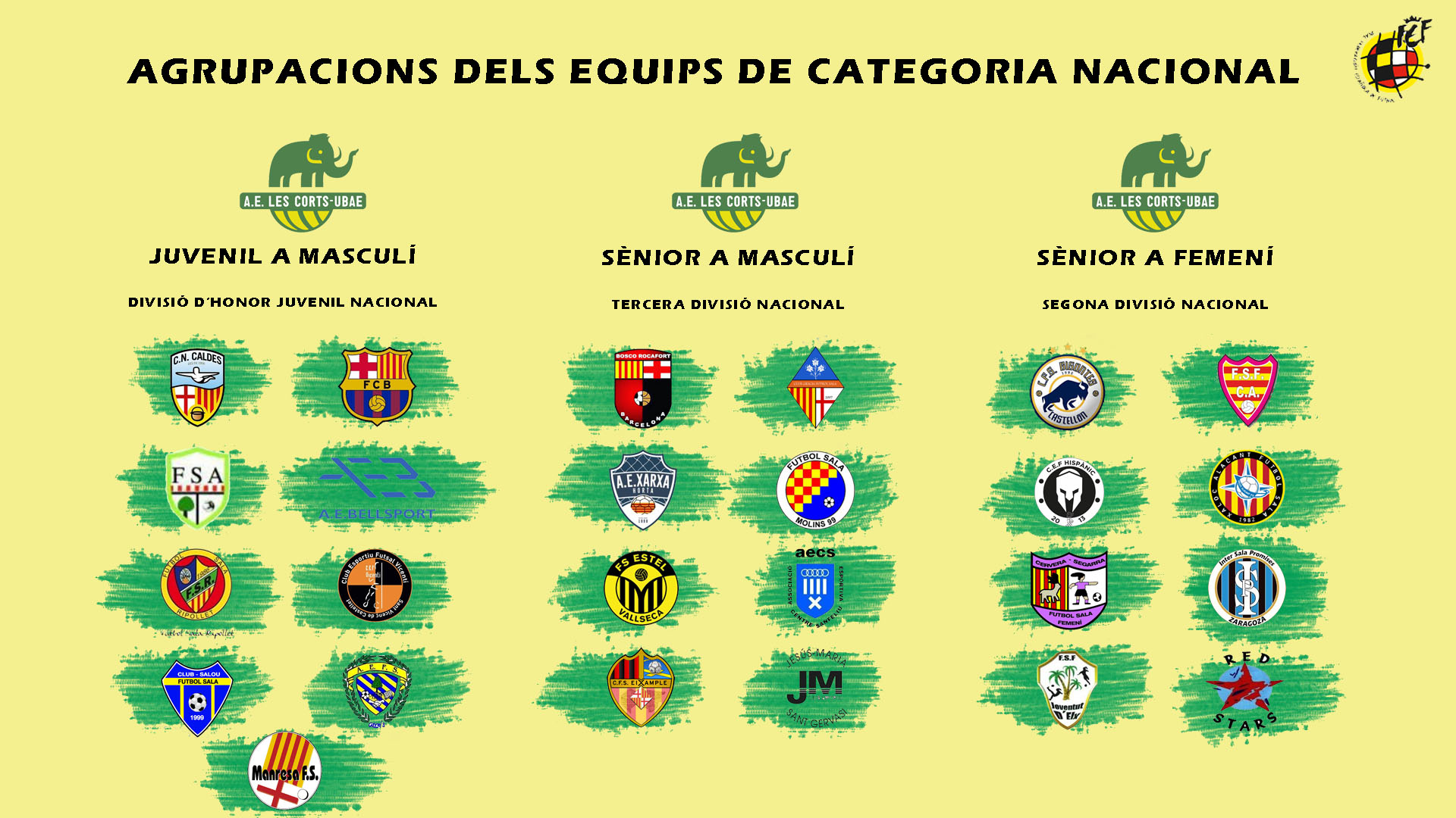 Aprofitem el debut dels dos últims per portar-vos les agrupacions de les lligues d’aquests tres equips de categoria nacional. El nou pla de competició a causa de l’actual pandèmia ha fet que els grups habituals hagin quedat dividits en subgrups. Un cop es disputin tots els partits d’aquesta primera lliga en funció de la classificació es crearan uns nous subgrups en els quals es competirà per ser campió i per ascendir de categoria o bé per no baixar.