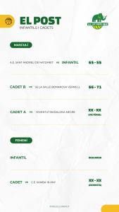 Comencem el partit una mica adormits, deixant escapar rebots i permetent cistelles fàcils. Ens ha costat entrar en ritme els primers minuts, però a partir del segon quart l’equip ha fet un canvi d’actitud. Hem començat a pressionar les primeres línies, robar pilotes, córrer contraatacs i dominar el rebot, i això s’ha notat molt en el joc i en el marcador. Hem controlat el partit durant els 40 minuts, jugant amb intensitat i amb ganes. Encara hem de treballar més el joc en estàtic, tenir paciència i moure millor la pilota quan no podem córrer, però anem pel bon camí.