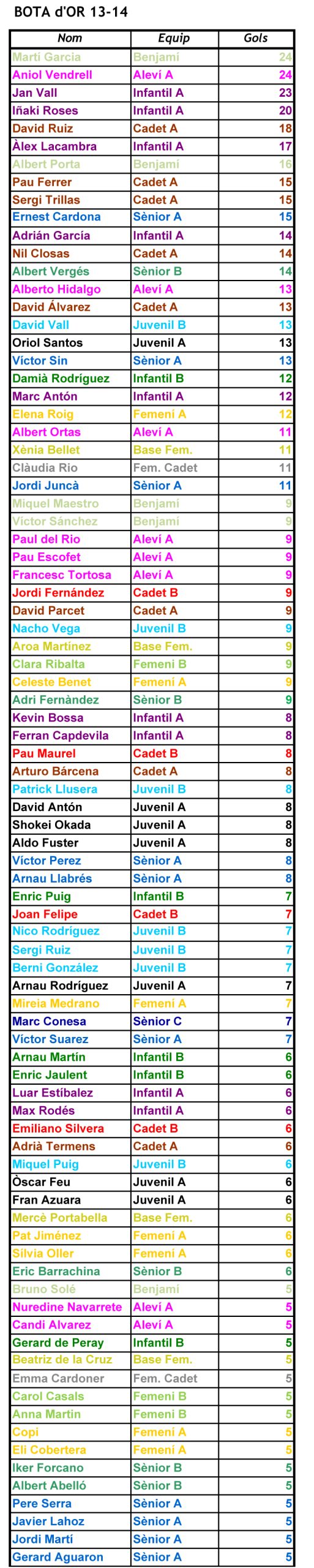 Aquí teniu la Bota d’Or actualitzada! La lluita pel màxim golejador del club està apretadíssima!