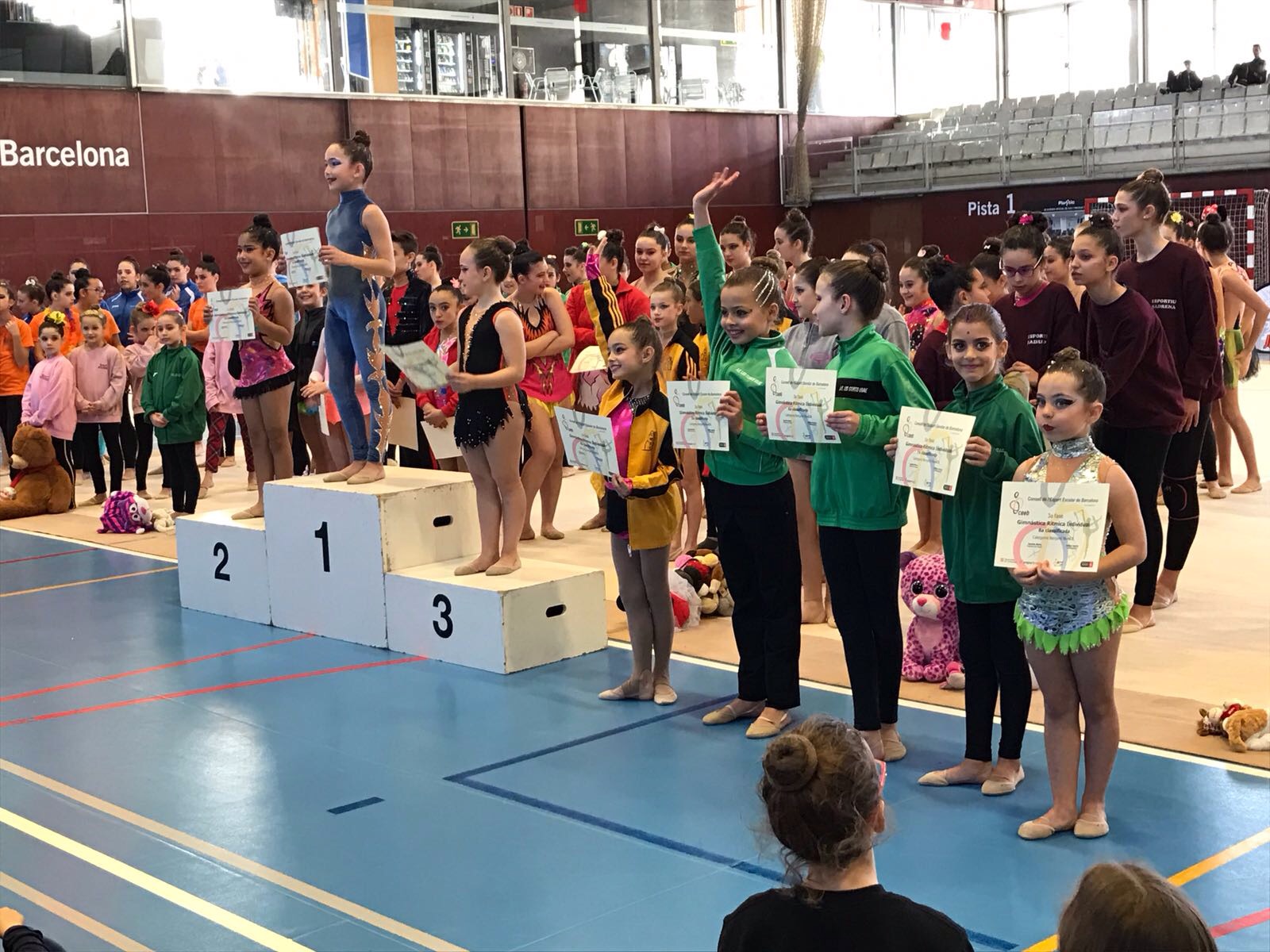 Vam començar dissabte a les 8’30h del mati amb el nivell C. Ben aviat arribaven els/les gimnastes, per maquillar-se i preparar-se. Amb 7 gimnastes del club, iniciàvem un cap de setmana ben mogudet. Tots ells van fer una gran actuació, i això es va veure reflexat en els premis: