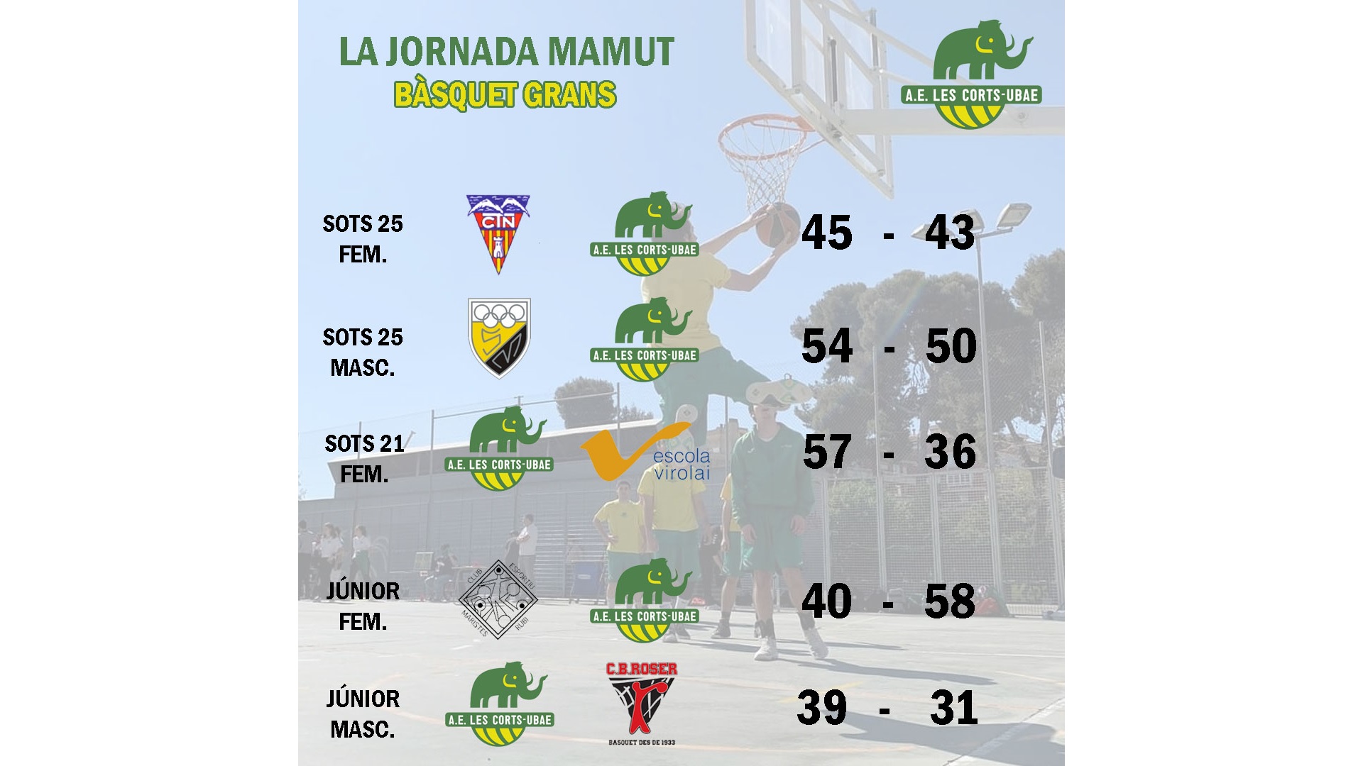 Júnior Masculí 39-31 CB Roser: Partit treballat que, amb una mica més d’encert, hagués sigut molt més tranquil. Una gran defensa ens ha ajudat a aconseguir la victòria, i és que amb un 1/15 en TL i perdonant sota cistella no competirem contra els equips de dalt. Seguim treballant.