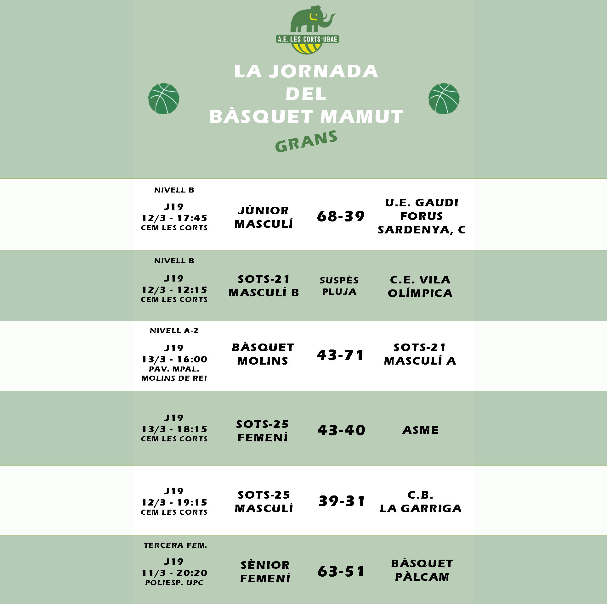 A continuació us deixem tots els resultats i cròniques dels partits del passat cap de setmana en un nou post de la jornada mamut de bàsquet.