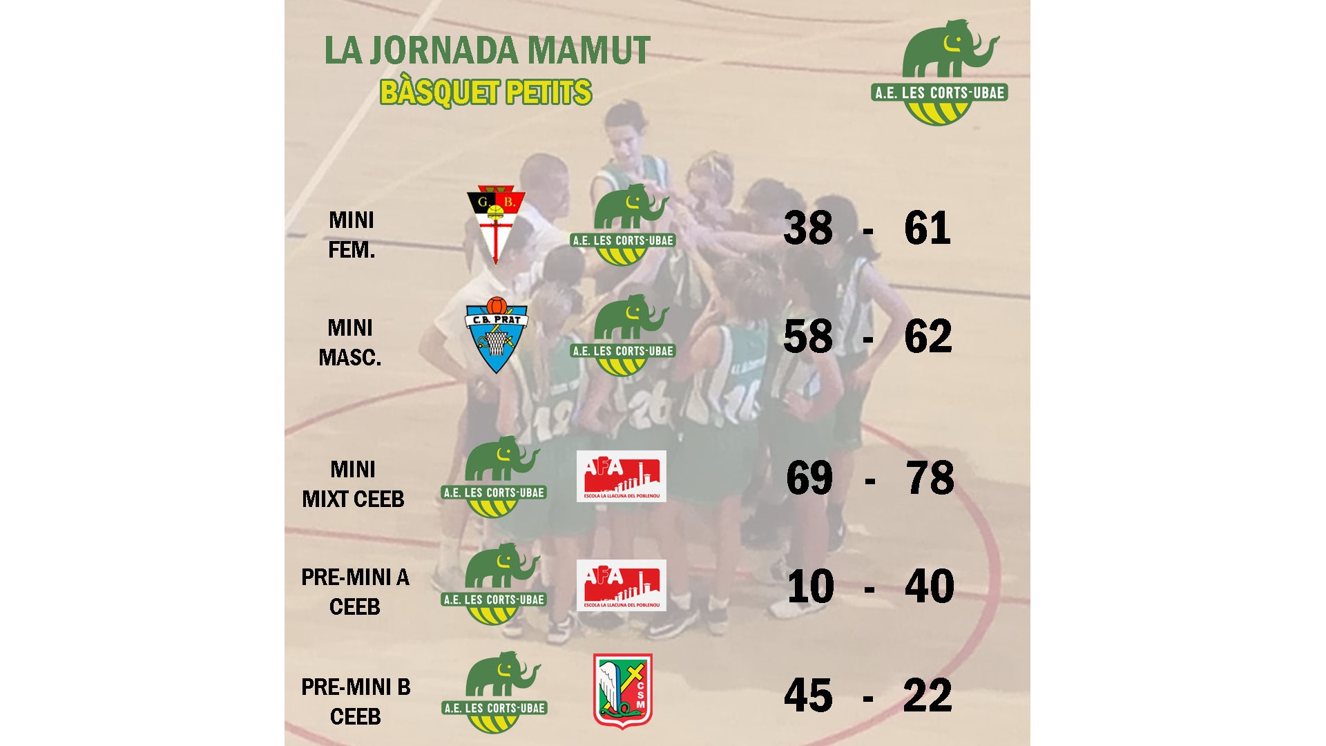 Mini Mixt 69-78 AFA La Llacuna: Primera derrota de l’equip on ens adonem que hem de treballar més i més dur. Partit irregular on els errors en dos quarts ens han perjudicat. A part d’això molt bon partit on hem sabut estar oberts i fer passes als talls. Ens ha costat més ficar-nos en defensa.