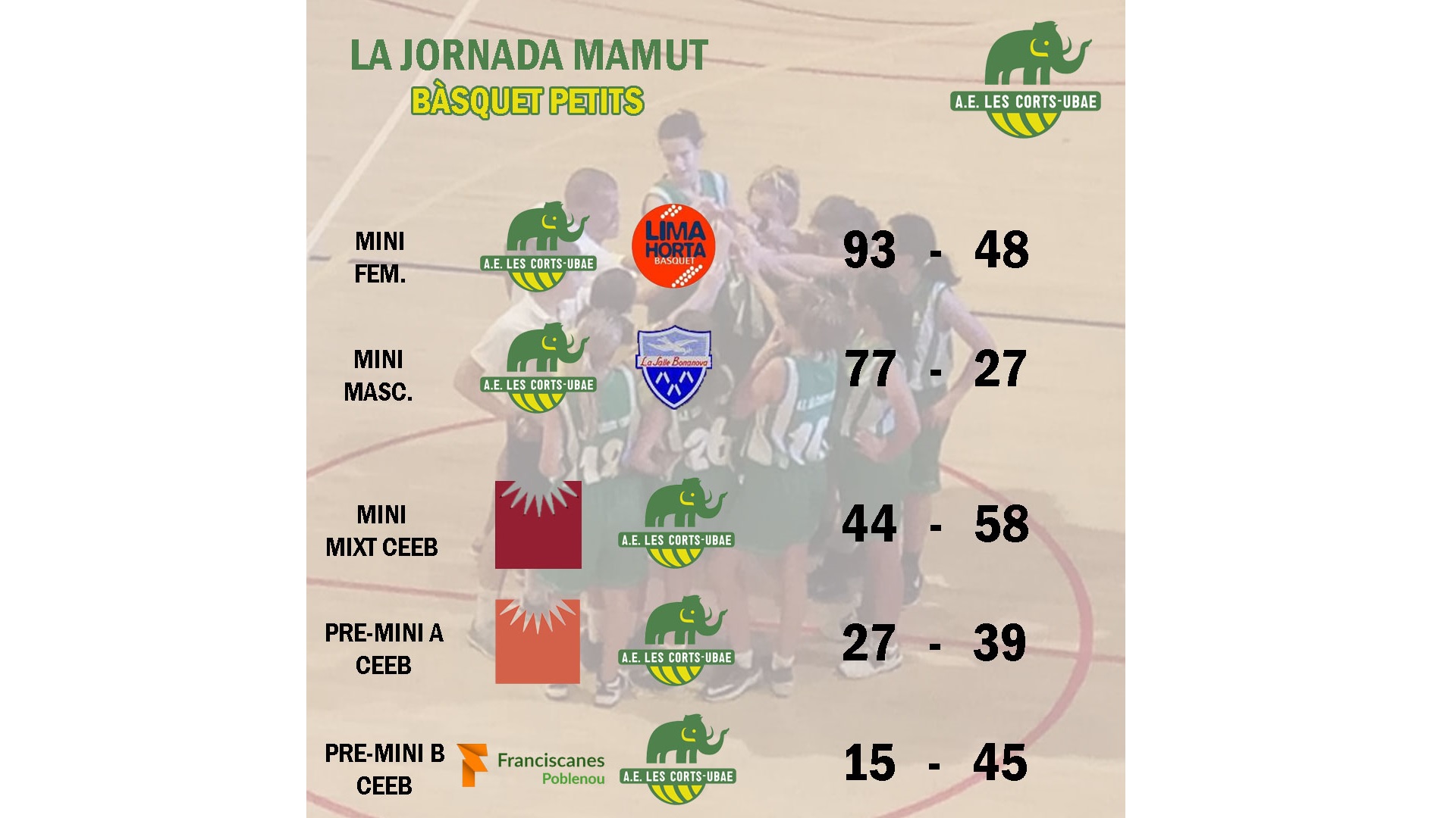 Mini Masculí 77-27 La Salle Bonanova: Partit marcat per la diferència de nivell que els locals van aprofitar per treballar dinàmiques ofensives noves en el que s’intenta millorar el joc sense pilota.