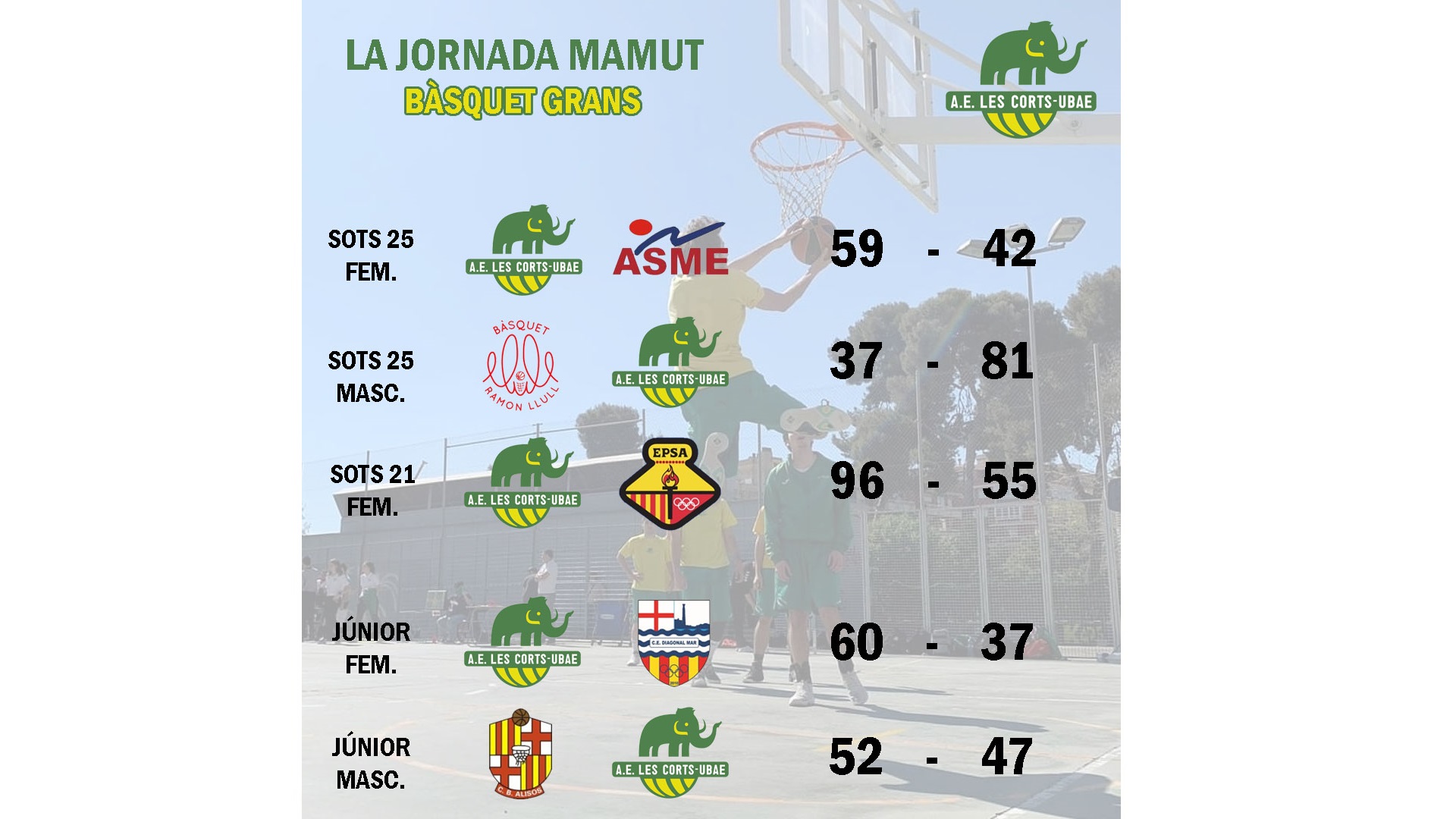BAM 70-32 Cadet A Masculí: Partit on ens han superat pel nivell físic del rival. Les baixes també han fet difícil les rotacions i no hem pogut tenir regularitat. Mentalment també ha sigut difícil però els que hi eren han intentat sobreposar-se a les dificultats. Molts aspectes a treballar i marge de millora.