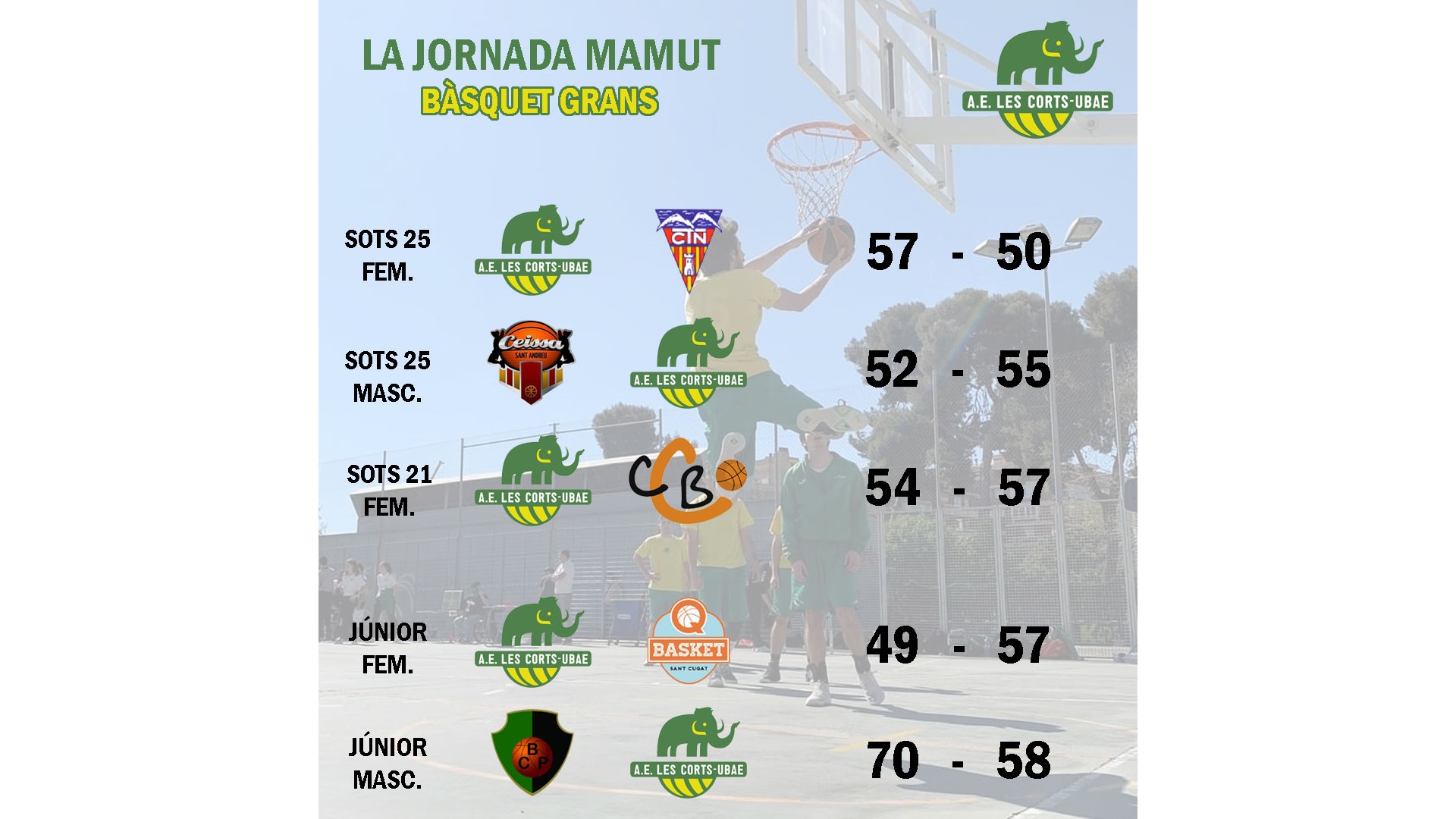 Sots-25 Femení 57-50 CN Terrassa: Després d’un mal inici de partit (1-7), a meitat del primer quart ens hem refet per fer un partit seriós i ben treballat. La clau és que som un equip, totes les jugadores són importants en la rotació i podem mantenir un ritme alt tot el partit. Bona victòria contra un rival directe!
