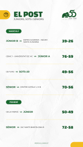 Victòria importantíssima de l’equip que després d’una primera part justa, dona un cop sobre la taula el tercer quart per emportar-se el matx contra un rival directe. Ens queda preparar molt bé els 5 últims partits, on cada setmana tindrem una final.