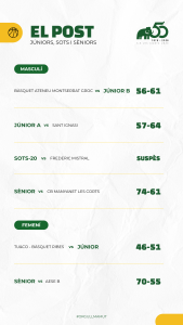 És la primera vegada en molt de temps que ens trobem davant d’un rival que realment ens competeix de tu a tu. Ha estat un partit molt igualat, amb alternatives constants, però el que acaba decantant la balança són els nostres propis errors no forçats: moltes pilotes perdudes, passades que no arriben, cistelles fàcils fallades i un percentatge molt baix en tirs lliures, accions que en un partit tan ajustat es paguen cares. El rebot, tot i ser clarament superiors físicament, no hem treballat prou per assegurar-lo i el rival ho ha aprofitat, conceding-lia terceres, quartes i fins i tot cinquenes opcions que acaben en basquet. Tot i això, cal destacar la reacció de l’equip a l’últim quart, amb un parcial de 12 a 4 que ens permet remuntar un -15, demostrant caràcter i capacitat de competir. Aquest partit ens ha de servir per adonar-nos que encara tenim moltes coses a millorar. No podem continuar amb aquest ritme d’entrenaments: cal augmentar la intensitat, el ritme i l’exigència si volem competir de veritat tots aquests partits i estar a l’alçada dels rivals que ens posaran dificultats.