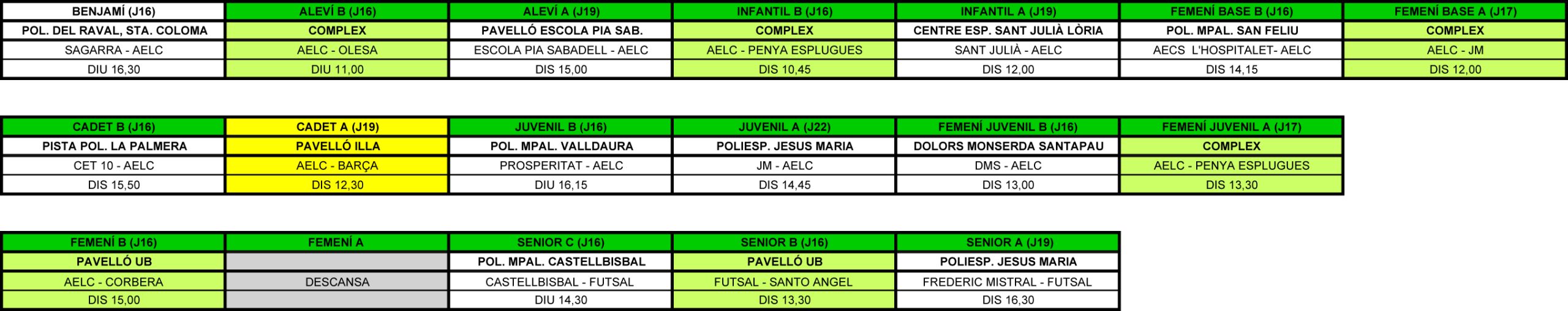 – El Cadet “A” té partidàs contra Barça. El resultat de l’anada va ser favorable al Barça per 5-2 però els nostres van donar la cara, especialment a la 1a part. Barça només ha cedit un empat en tota la temporada. Guanyar suposaria una passa molt important per a la 2a posició, ara mateix molt apretada amb Marfil i Mataró.