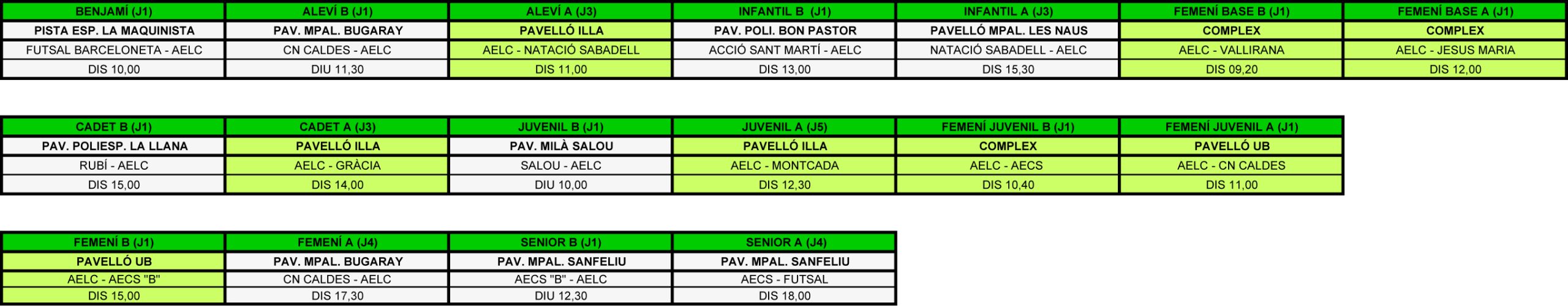 Jornada amb 3 clubs rivals com a protagonistes: 4 partits contra AECS, 3 conta CN Caldes i 2 contra Natació Sabadell. Molta sort a tots els Mamuts!!