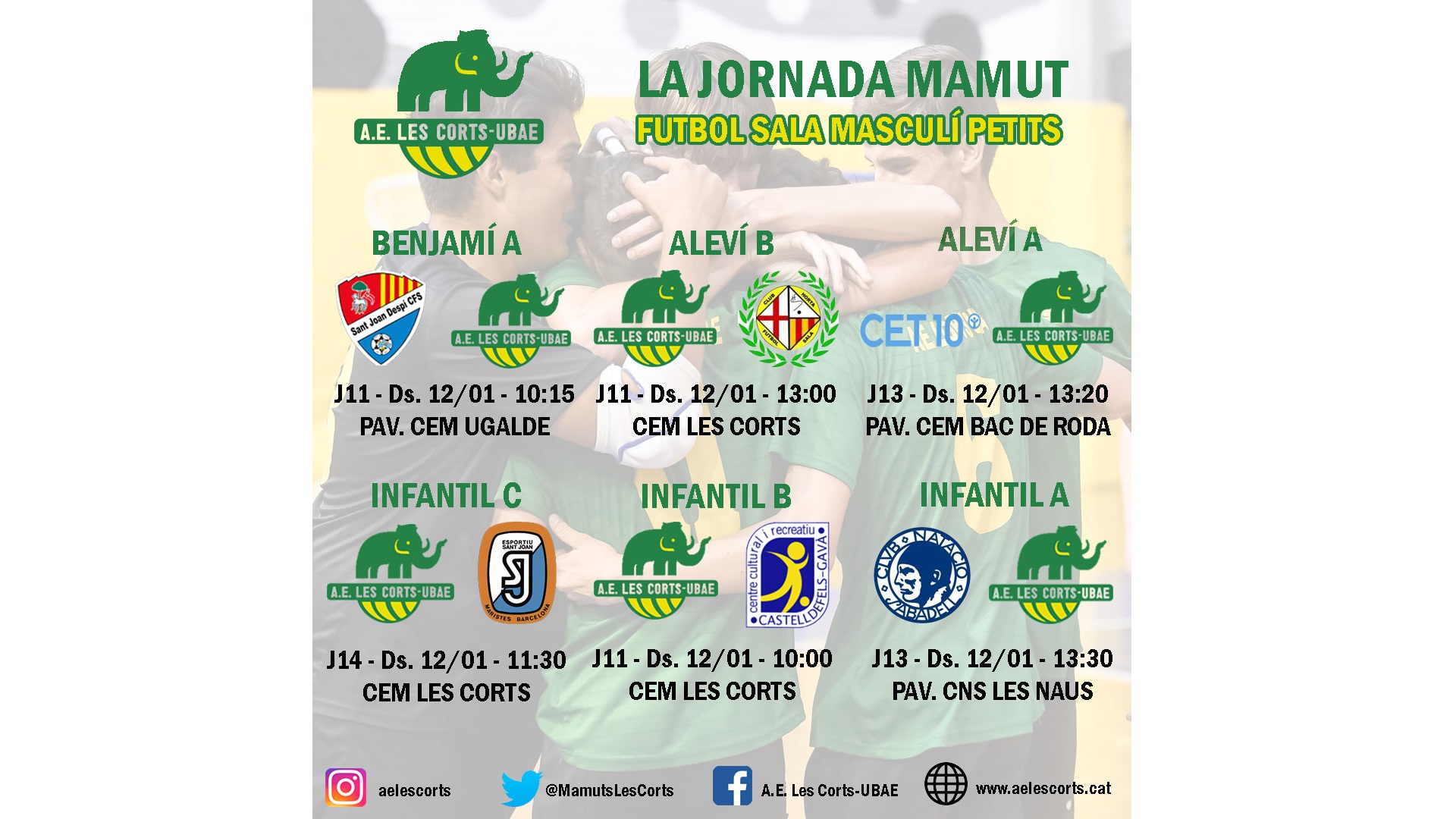 Ja tenim aquí la primera prèvia de la jornada mamut del 2019 amb un total de 16 partits. En destaquem tres. L’enfrontament de l’Infantil C masculí, segon classificat, que es veurà les cares amb el líder, Esportiu Maristes Sant Joan; el partit del Juvenil A femení, també segones classificades, que jugaran contra CET10, terceres classificades empatades a punts; i finalment el matx del Sènior A masculí davant el Sala 5 Martorell, també segons contra tercers respectivament.