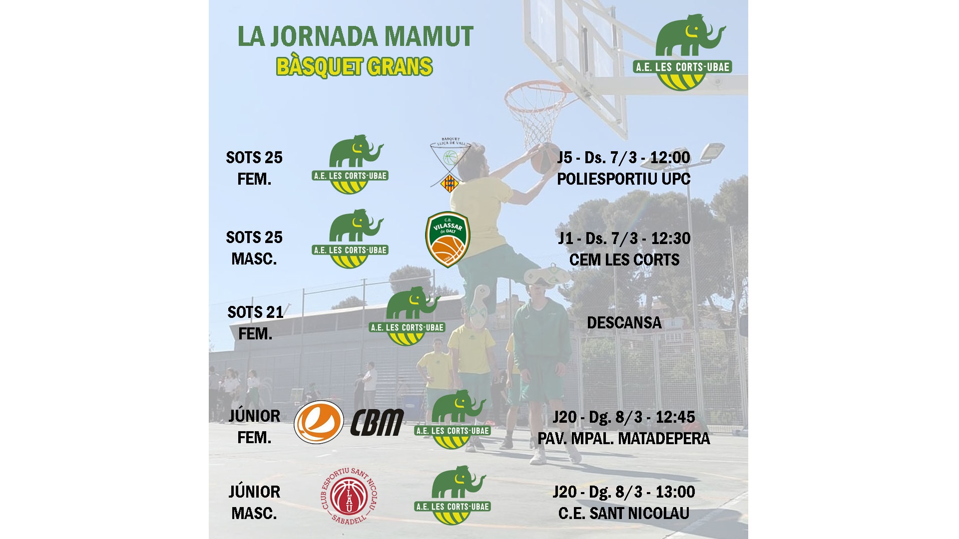 Arriba un nou cap de setmana i com sempre us portem la prèvia de la jornada mamut. Tots els partits, rivals, horaris i pistes perquè pugueu venir a animar els i les mamuts. Som-hi!