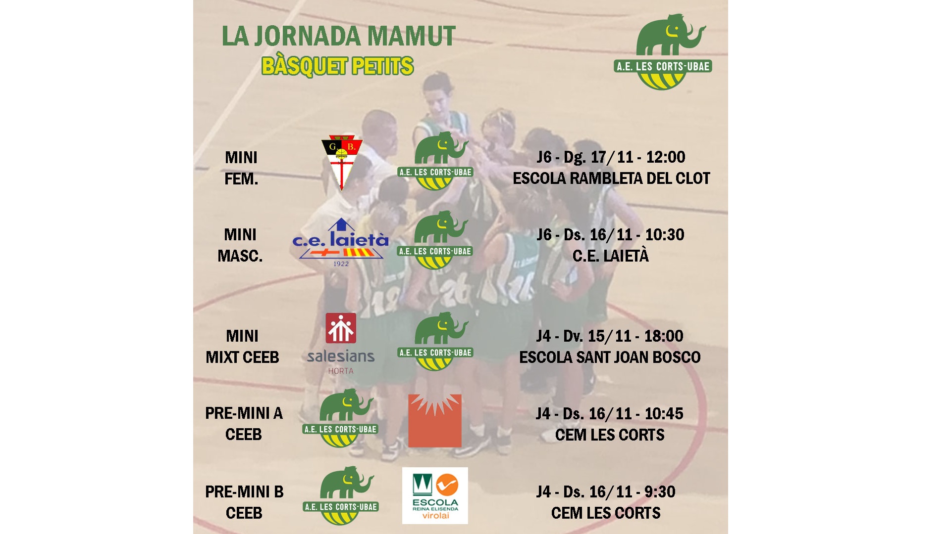 Us portem una nova prèvia de la jornada mamut de bàsquet. Tots els partits, rivals, horaris i camps perquè pugueu animar els mamuts. Som-hi!!!