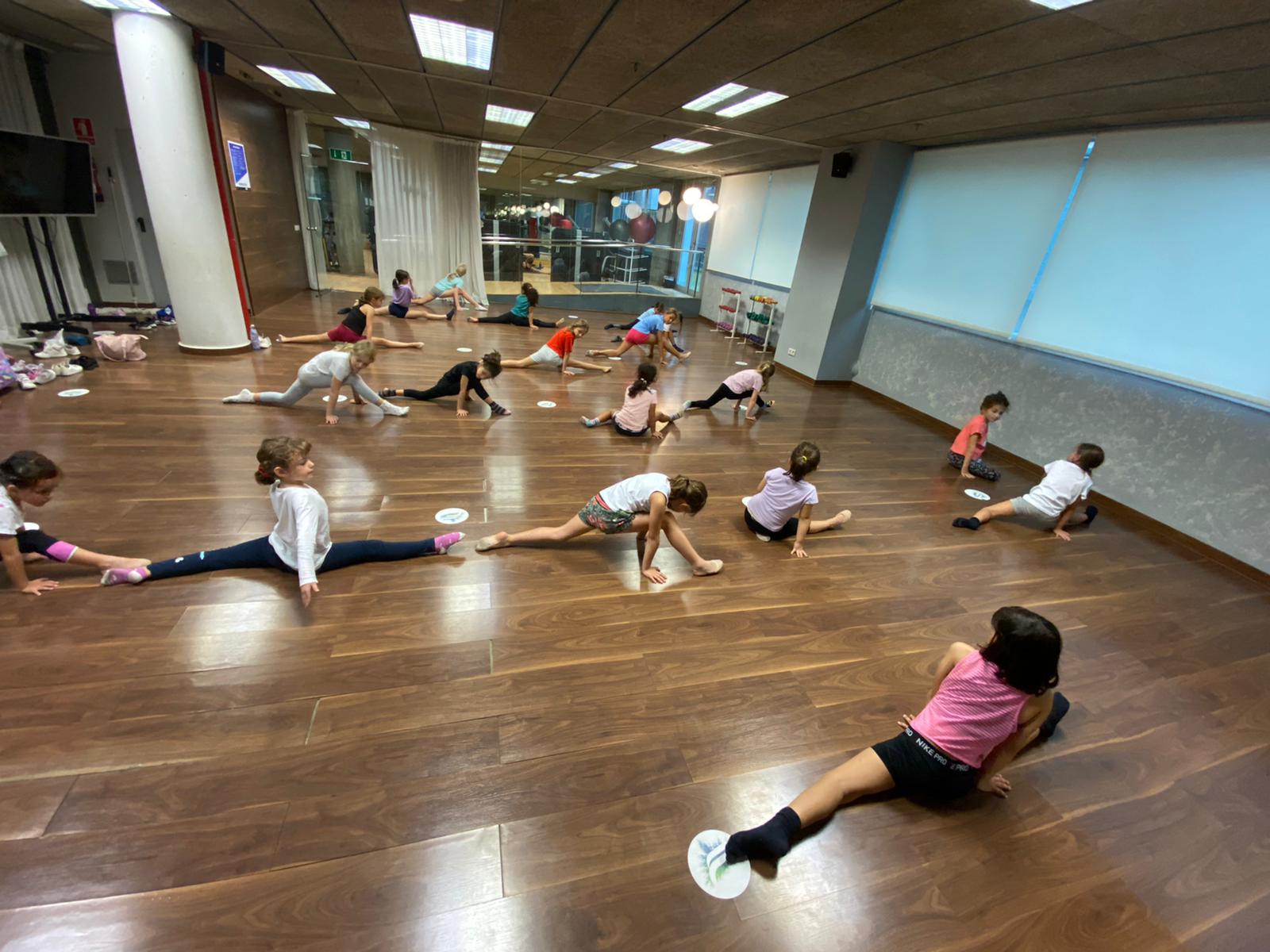 Més de quaranta nenes, des de P5 fins a 4t de primària, fan iniciació a la gimnàstica rítmica amb nosaltres repartides en dos grups; un els dilluns i dimecres i i un els dimarts i dijous.