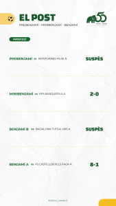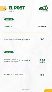 Destcar el doble triomf de MiniBenjamí i Benjamí A que han començat amb bon peu la segona fase i de moment no coneixen la derrota. En categoria aleví els conjunts masculins C i A i l’Aleví A femení van aconseguir també tres bones victòries.