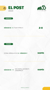 Bon paper també dels 4 conjunts cadets, els tres masculins i el femení que tots ells van sumar el +3. S’hi van afegir els dos juvenils femenins A i B amb dos bons triomfs i el Sènior B masculí amb una treballada victòria.