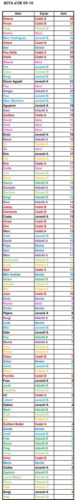 Aprofitem també per penjar la Bota d’Or actualitzada, que només es mourà ja amb els golejadors alevins de les pròximes jornades: