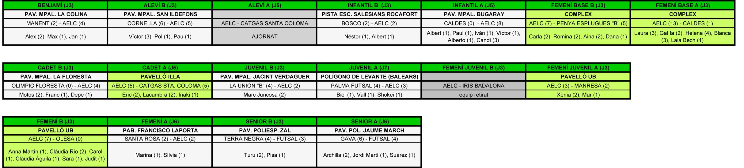 Aquí teniu tots els resultats de la jornada!!! Balanç de 7 victòries, 3 empats i 5 derrotes.