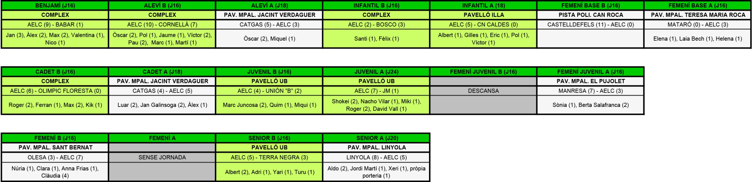 Aquí teniu els resultats de la jornada, amb un balanç de 10 victòries i 5 derrotes: