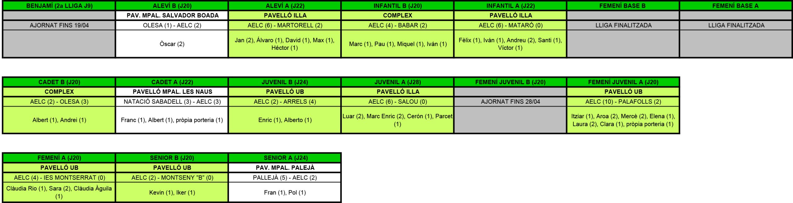 Juvenil B: “Derrota dura. Avui som superiors però incapaços de ficar la piloteta a dins. Mala presa de decisions al darrera provoca errors que costen gols. 2-2 al descans. Els 10 últims minnuts de la 1a part mereixem molt mès, però si no marques ho pagues. A la segona part seguim sent superiors pero seguim cometent errors i entrem en el seu guió de partit, boig i amb poca pausa, fet que els ha acabat beneficiant. Al final hem acabat fent una mica la guerra cadascú pel seu compte. Ho hem intentat de 5 però tampoc hem estat capaços de marcar. Seguim! “ (Nil)