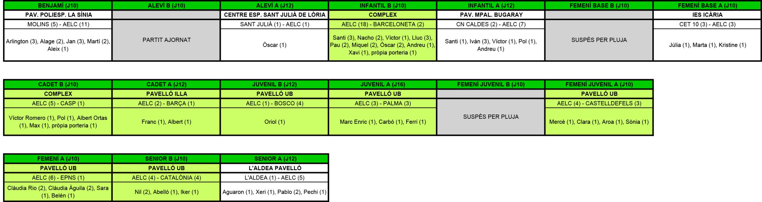 RESULTATS DEL CAP DE SETMANA (18-12-16)