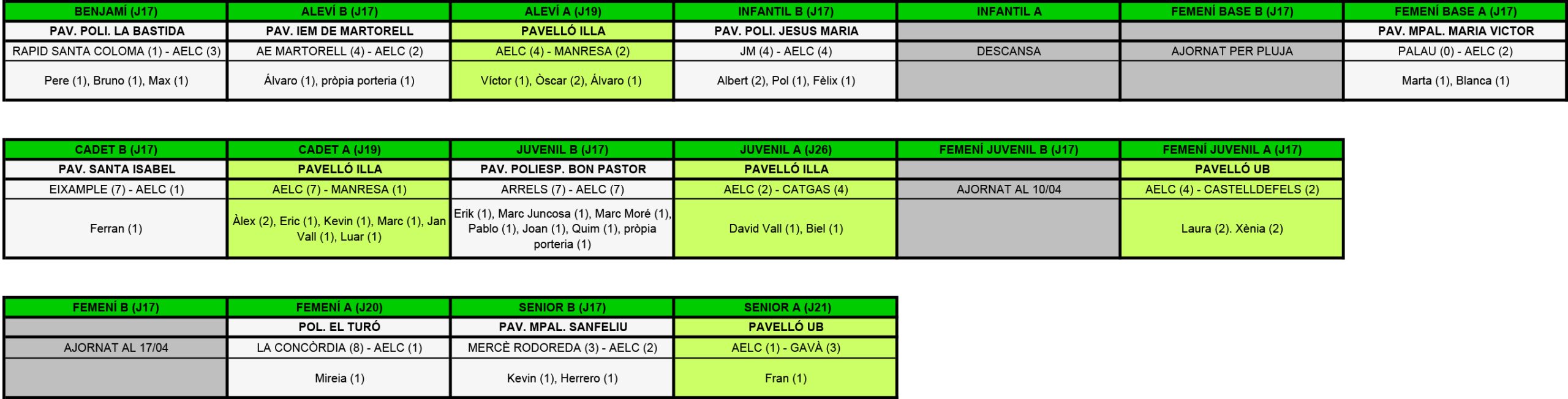 RESULTATS DEL CAP DE SETMANA (20-03-16)