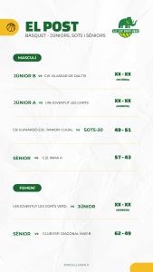 Partit marcat pels parcials. Quan aconseguim connectar i estar actius som capaços de dominar el joc i reduir distància en el marcador però no som capaços de mantenir aquesta intensitat física i de joc i el rival s’allunya cada vegada que ens apropem al marcador. Tenim clares les coses a millorar i som conscients de la feina a fer. Ara només falta posar-ho en pràctica.