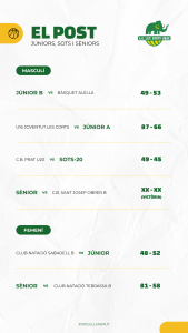 Vam començar el partit amb molt bones sensacions, imposant el nostre ritme i aconseguint posar-nos per davant en el marcador gràcies a una defensa sòlida i bones decisions en atac. Tot i això, després del descans l’equip va baixar notablement la intensitat, i això es va traduir en cistelles innecessàries del rival i males decisions en atac, fruit de la falta de concentració i de ganes. A l’últim quart vam reaccionar amb orgull, apretant en defensa i intentant tornar a entrar en el partit. Hi va haver moments en què semblava que la remuntada era possible, però l’esforç va arribar tard i no va ser suficient per capgirar el resultat. Un partit amb alts i baixos que deixa clar que, mantenint la concentració i l’actitud durant els 40 minuts, el resultat podria haver estat ben diferent.