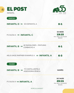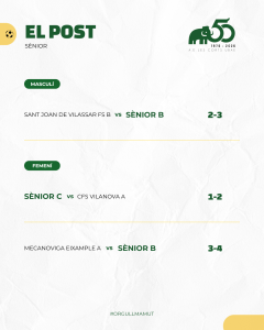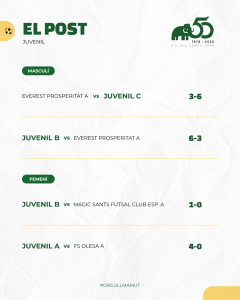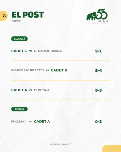 Destacables també els partits d’Aleví A masculí i Juvenil A i Sènior B femenins que van sumar tres bones victòries. Juvenil C i Juvenil B masculins també van sumar 3 punts importants. Aleví B i Juvenil B femenins també van seguir el mateix camí.